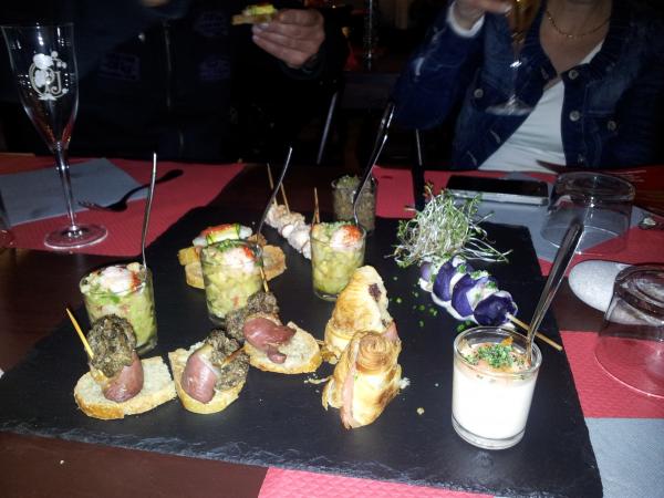Lunchen var nog den bästa hittills, svårt att beställa som vanligt, men då vi var ute på riktiga landsbygden blev det också mycket billigare än i t.ex. Biarritz. Tog en Tournedo Rossini med Foie gras på toppen, riktig höjdare.