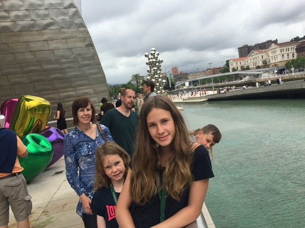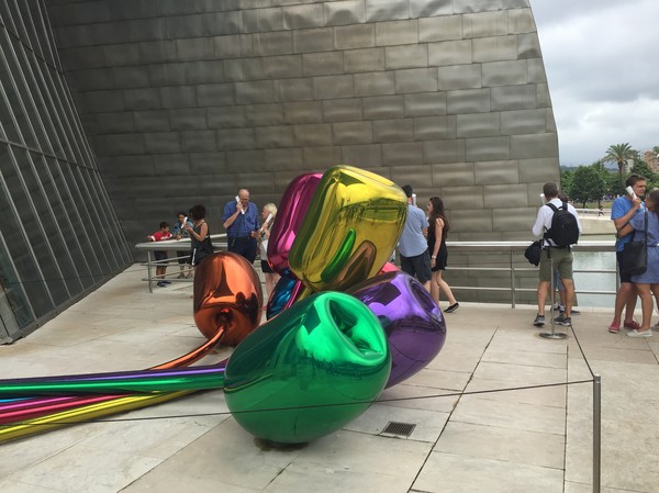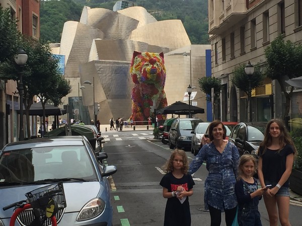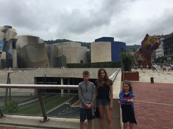 När vi kom in i staden kom vi rakt in via bron bredvid Guggenheimmuséet, och jag tror inte jag sett en coolare byggnad, möjligtvis är Sagrada Famillia i Barcelona strået vassare. Vi svängde ner, körde förbi den blomsterklädda valpen och rullade rakt ner i ett parkeringshus 100m från muséet.