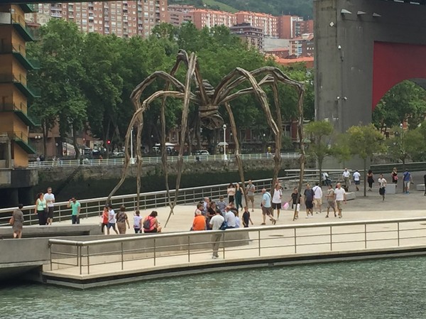 Muséebesöket var riktigt bra, lagom mycket, uppdelat i två delar. Vi tog lunch i halvlek och inte ens den sura spanska tanten bakom disken på muséebaren kunde spoliera de goda pinxtos vi fick. Helt ok billigt och fräscht. Tyckte att Jeff Koontz var riktigt bra, var inte riktigt lika förtjust i Basqiuat. En annan höjdare var spindeln utanför muséet av Louise Bourgeois. Lägg märke till att Sander blev på bättre humör ju längre dagen led.