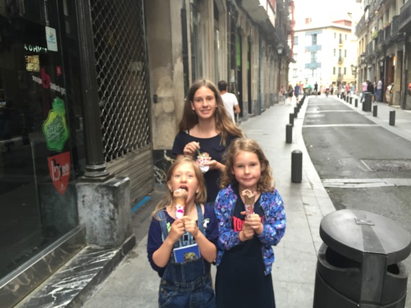 Efter muséet gav de andra upp och åkte hemåt medan jag och Liv, plus tjejerna stannade kvar i Bilbao och tog tunnelbanan till gamla stan, det var ganska dött, fel tid och en söndag, men vi fick i oss lite mer pinxtos och sen blev det lite glass på vägen tillbaka till tunnelbanan.
