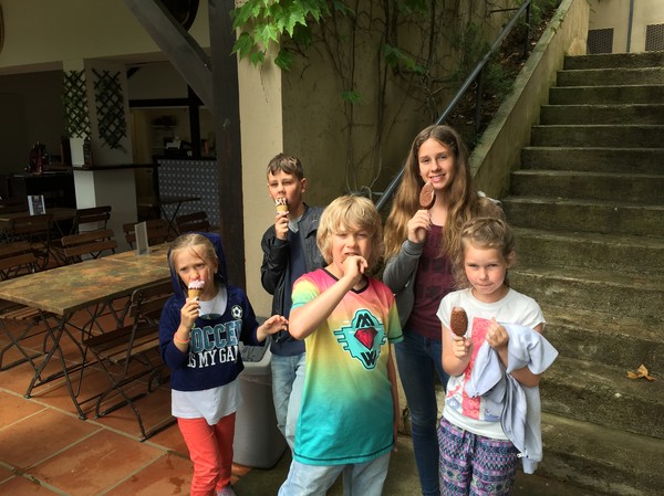 Vi fick engelska häften att läsa för guidningen var på franska. När man inte längre bara behöver att förstå vägbeskrivningar eller meny inser man ännu mer vad ens fyra i franska är värd. Fyra barn och en tonåring som måste lyssna på långa utläggningar på ett språk som de inte förstår är en utmaning i sig. Grottorna var som tur var underhållande i sig själva.