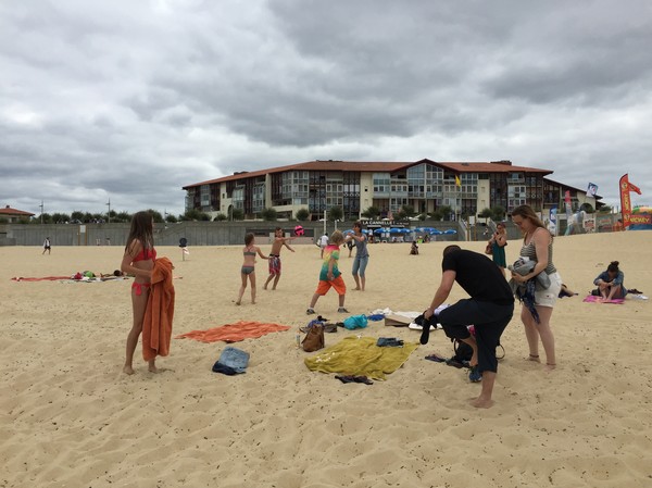 Tyvärr bestämde sig alla för att banga surfning, själv förstår jag inte riktigt varför, hade jag kunnat för min rygg och knän skull hade jag skippat vad som helst för att surfa, men å andra sidan, det är inte riktigt samma grej här i Frankrike. Risken finns att man får en surfinginstruktör som är dålig på engelska, och de hade dessutom tänkt ta en grupplektion med andra, och det tror jag inte alls går att jämföra med vad vi gjorde förra året, så risken är att de blivit besvikna.