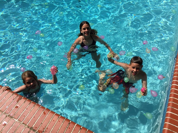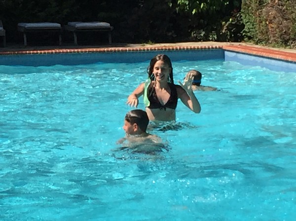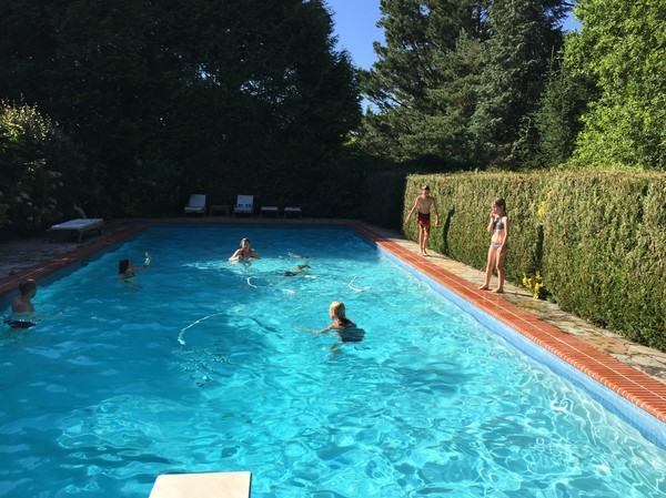 Att ha egen pool är verkligen guld värt, och tack vare poolen så har nu Signe till slut lärt sig simma efter att ha misströstat på otaliga simskolor runt om på Stockholms badhus. Så nu hoppas det glatt i från trampolinen på det djupa och dyks i vågorna längs atlantkusten.