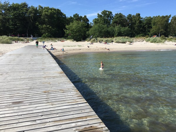 Efter lunch bar det ner till stranden igen för ett bad innan vi åkte hem, men jag hoppade över. Det var ett svart bälte med någon sorts alger eller snäckskal som fastnade på alla som badade, inte så fräscht tyckte jag, då hängde jag hellre i skuggan vid Grande Plage Bar.