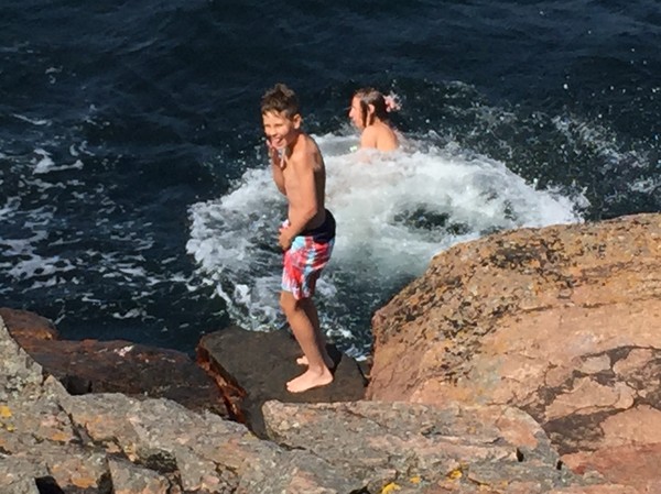 ...och ett bad ute vid Fortet. Man vänjer sig vid kylan i vattnet om man badar varje dag.