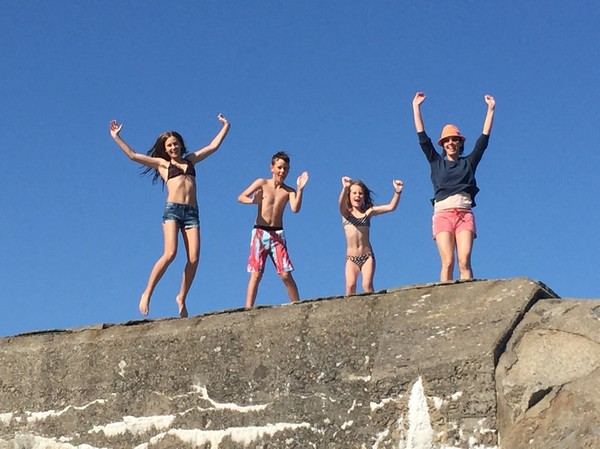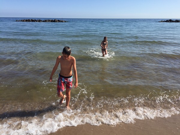 Vi badade ganska länge ändå innan vi gick upp till baren som låg 100 meter innan stranden, halvägs upp till parkeringen. Barnen tog en glass, Liv en öl och jag en café au lait. Vädret hade hela tiden blivit bättre under eftermiddagen och det var tur att vi fick något i oss innan vi fortsatte upp till bilen.
