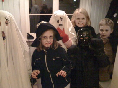 Sander var Darth Vader, Siri häxa, de övriga är grannbarnen. Vi var en skock på 7 barn och två vuxna som länsade Enskede på allt godis