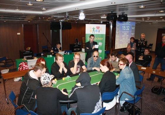 Efter taxfree tog jag lite frukost och tog en runda i turneringslokalen där den vanliga turneringen hade satt igång igen kl 11. Funderade på att spela cashgame men gick upp till hytten och skrev lite blogginlägg istället. Sen ner till lokalen igen och där kom jag bland de sista och fick dra min plats.Killen som höll i korten sa att han visste vilket bord han skulle valt och när jag drog kortet sa han: "Tyvärr, det var inte det jag skulle valt". Undrade lite varför han sa så, men det skulle jag snart bli varse när jag satte mig ner vid bordet......