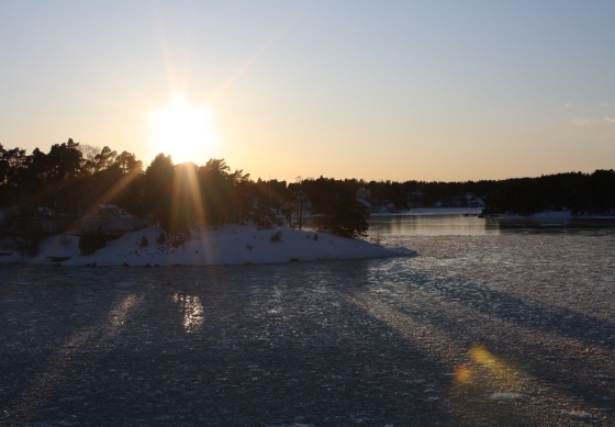 När vi skulle gå ombord blev det strul med Andy och hans kompis biljetter så jag gick ombord, registrerade mig och kollade sedan på Melodifestivalen medan jag åt en god middag på den ryska restaurangen, Blini till förrätt med forellrom och en kall vodka, och sedan en ankrätt till huvudrätt.