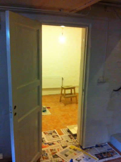 Idag har jag städat källaren eftersom jag tänkte måla klart allting därnere. Hann så långt så att det är maskerat men sen var det dags att åka till skolan för utvecklingssamtal med Sanders lärare. Det var ganska dammigt därnere efter att rörmokaren borrat genom väggen så städningen tog längre tid än väntat, men får hoppas det går snabbt att måla imorgon. Uruselt väder ute så det är inte riktigt väder att stå ute att såga, men kanske bättre imorgon. Lite foder och socklar ska sågas nämligen.