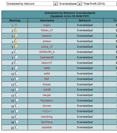Finns även 300krs turneringar kl 22.00 och kl. 00.00 som jag borde spela men det blir alltmer sällan. Kanske oftare nu när jag börjar uppdraget.