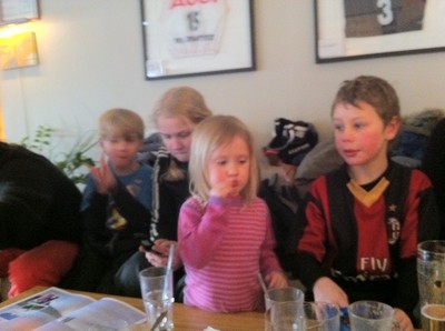 Det var tufft att väcka Sander, men vi kom iväg i tid och det var tur det. Sanders lag krossade motståndet i de två första matcherna, även om det blev jämt i slutet på den andra då Sander stod i mål. Det tycker jag han kan lägga av med, det tar för hårt på fadershjärtat, mycket värre än när han spelar ute. I sista matchen mötte de ett riktigt bra lag från Duvbo, och det såg ut som en säker förlust och stort nederlag tills dess att Sander vaknade till. 7(sju) mål av Sander i sista matchen efter en fantastisk upphämtning och matchen slutade till sist 9-6 till Enskede. Jag är väldigt engagerad under matcherna, men försöker var tyst. Svårt dock när det är jämnt.