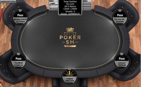 Live SM är en helt annan sak, och trots Svenska Spels handikapp, de får inte ha onlinekval och de får enbart kvala in spelare på sina egna casinon, så lyckas de bättre än SvePoF. Pokerklubbarna skulle kunna anordna kval, alla onlinesajter med marknad i Sverige skulle kunnat anordna kval. Och det är ju på det sättet onlinesajterna kan tjäna på ett engagemang för ett SM utanför Casino Cosmopols väggar, anordna fördelaktiga kval till SM för att kunna locka till sig nya kunder. Det finns pengar att tjäna men ingen verkar vilja ha dem. Ungefär som när floppen kommer 2 6 T, man sitter ur position med fyra spelare efter sig som limpade in före floppen. Den som bettar får potten men ändå, rundcheck, ingen verkar vilja ha potten och därför så bettar man ut på turn och det är blxtfold varvet runt. Det känns nästan som om Svepof satt på stora mörken, alla limpade in, men de tryckte frenetiskt på lägg dig knappen, trots popupen där de påmindes om att det går att passa.