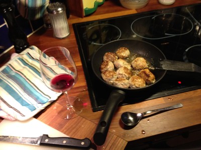 Sist men inte minst stektes det italienska köttbullar och till detta krävs det alltid ett glas vin så att man kommer i rätt stämning.
