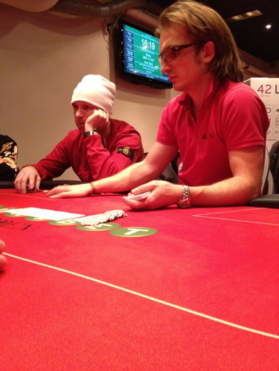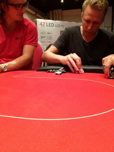 Moberg tog dock hem en fjärdeplats vid sitt första försök, det lönade sig att spela tight igår. Ett par spelare gjorde allt de kunde för att ge bort alla sina marker och väntar man tillräckligt länge kan man plocka hem dem med relativt liten risk. Kul var det i alla fall.