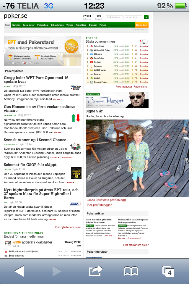 Dessutom väntar en företagskonferens i Istanbul och förhoppningsvis live-sm i poker under hösten så visst har jag en del att se fram emot. Dessutom är det ju två nät-SM, Svenska Spels och Pokerförbundets i höst, ska bli intressant att se vem som vinner det slaget. Det borde inte vara något problem för SvS att surfa vidare på framgångsvågen från tidigare SM, men ingen räknar väl bort Pokerstars som arrangör. Kan det vara så att fler svenskar har konto på Pokerstars än på SvS?