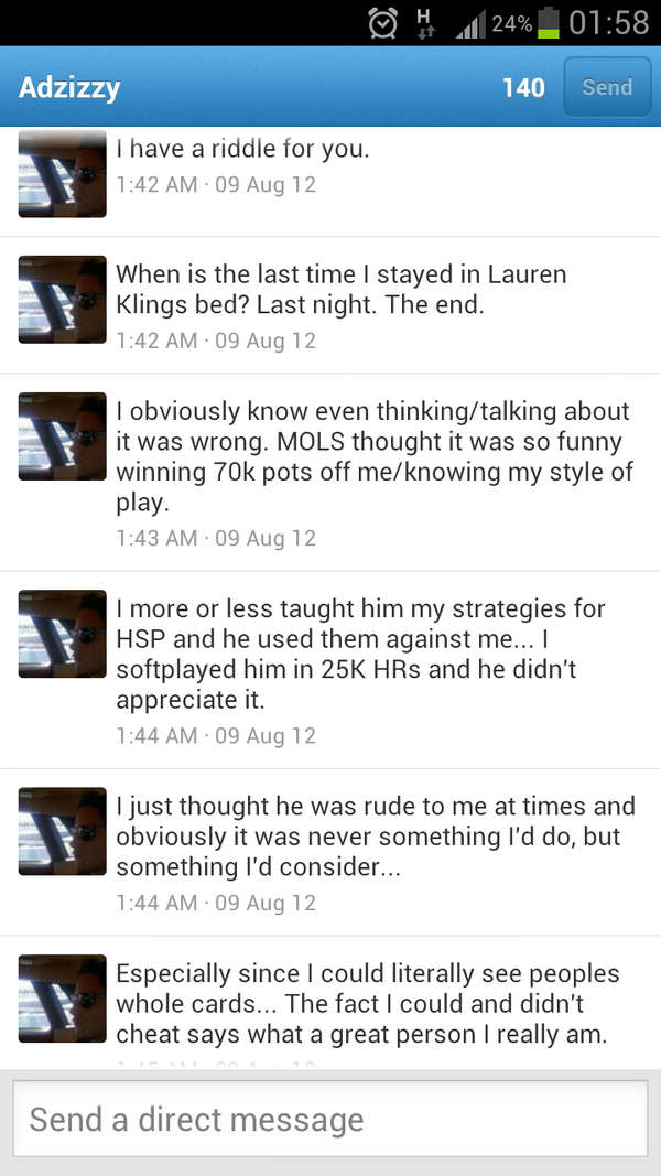 Tråden är nu upp i drygt 80 sidor, och man kan väl lugnt säga att det inte bara är intressanta inlägg, men en hel del har kommit fram och indicierna hopar sig. Matt Marafioti verkar onekligen ha en skev bild av sig själv, här demonstrerad av hans "vän" William Reynolds skärmdump på deras konversation.