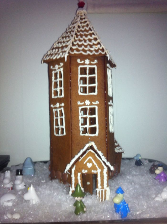 Så vi närmar oss jul med suddiga bilder, Muminhuset börjar få invånare ifrån muminkalendern. Jag var hemma från jobbet i fredags med samma huvudvärk som under SM, inget biter på den, har speciella migräntabletter som inte hjälper ett skvatt, drar istället i mig allt jag kan hitta, drar för gardinerna och gömmer mig för ljus och ljud.
