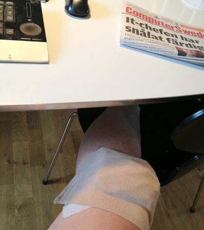 Igår när jag gick från dagis efter att ha lämnat Signe halkade jag rejält och översträckte mitt knä, andra gången på en vecka, så fick linda fast ispåsen och jobba hemifrån med benet så högt som möjligt. Inte så mycket snö den här vintern och därför tror de väl att de kan skippa att sanda, men det är halare än nånsin med underkylt regn, och varmt och iskallt om vartannat. Så jag trippar fram som en liten isprinsessa, för min doktor sa att det enda jag inte ska göra de närmaste tre månaderna är att skada knät igen.