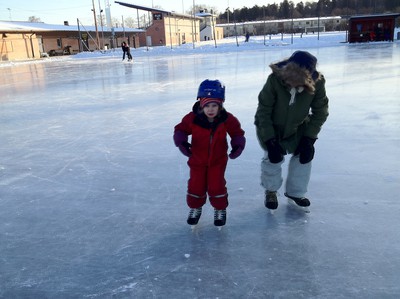 Skridskor idag medans Sander tränade fotboll, Signes första gång.
