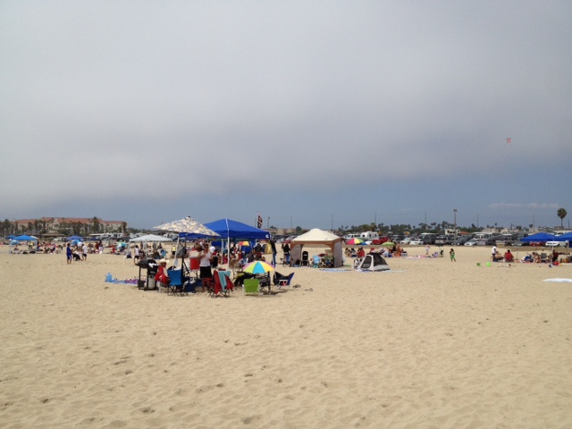 Amerikanarna verkar ta med hela uteplatsen till stranden, med grill, partytält, parasoll, stolar, bord m.m