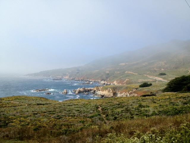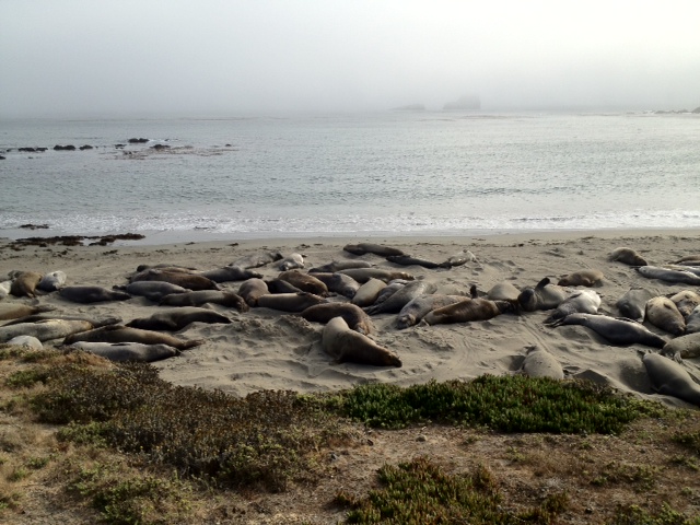 Vädret var växlande, ibland iskall dimma, ibland soligt och klart, och det tog en stund att ta sig ner längs kusten. Vårt mål var San Luis Obispo, där vi hoppades på bättre väder, men det var fortfarande halvkallt när vi närmade oss. Men å andra sidan hade vi tur och fick se sjöelefanter på en strand som vi åkte förbi.