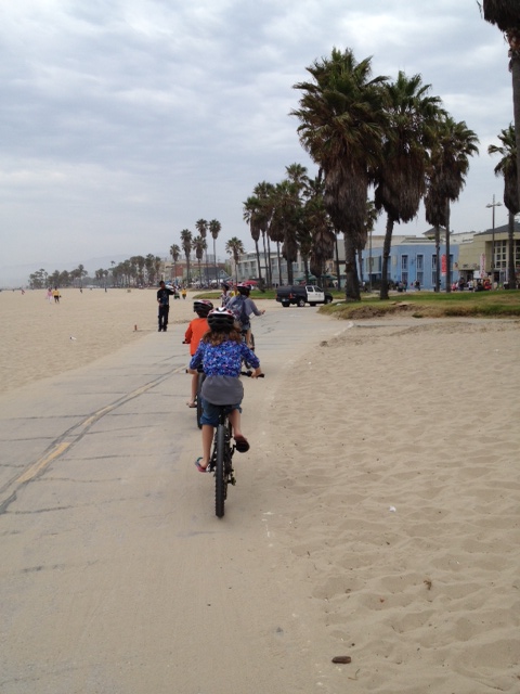 Kollade lite på kartan och kom på att vi kunda klara av både Santa Monica och Venice om vi hyrde cyklar, de två stränderna är egentligen bara två olika partier av samma strand. Sgt och gjort, hyrde cyklar och begav oss iväg längs stranden, vilket var ett perfekt sätt att ta sig fram.