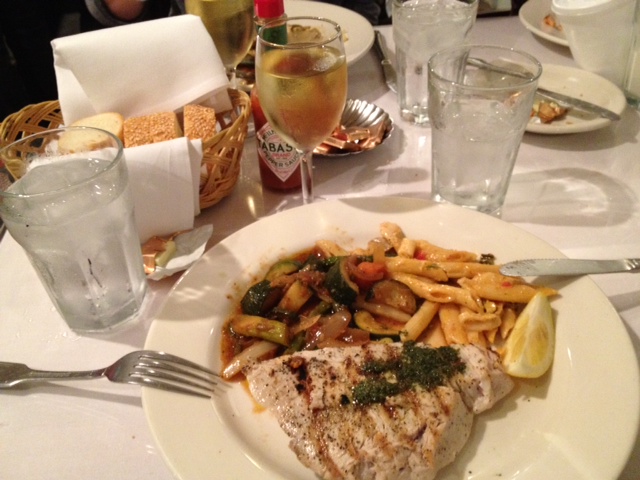 Vi åt grillade ostron, första gången jag tyckt att ostron var gott, och sen fick jag en riktigt bra tonfisk.