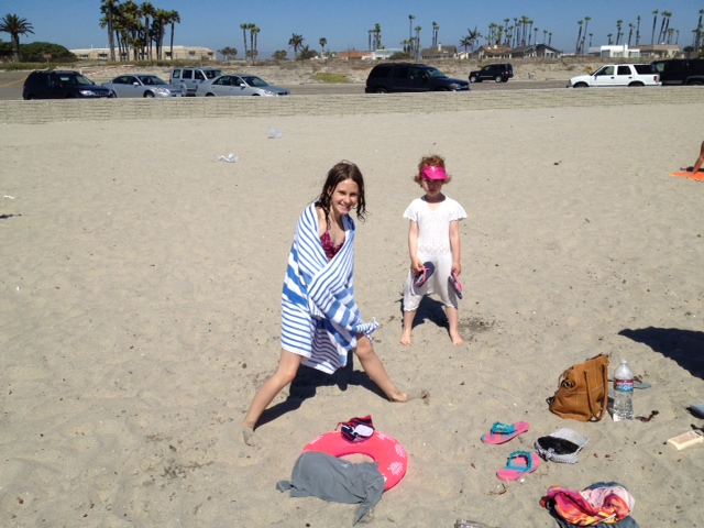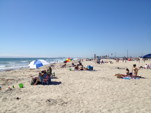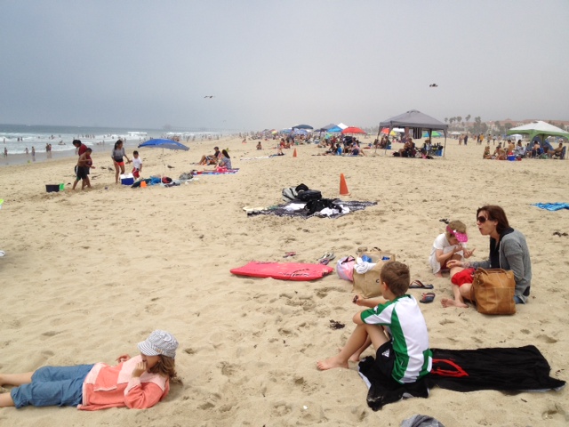 Men jakten fick vänta för nu var vi vid Huntington Beach, "Surf City". Varmt i luften och sol-dis, men familjen var lite tveksam till bad först...