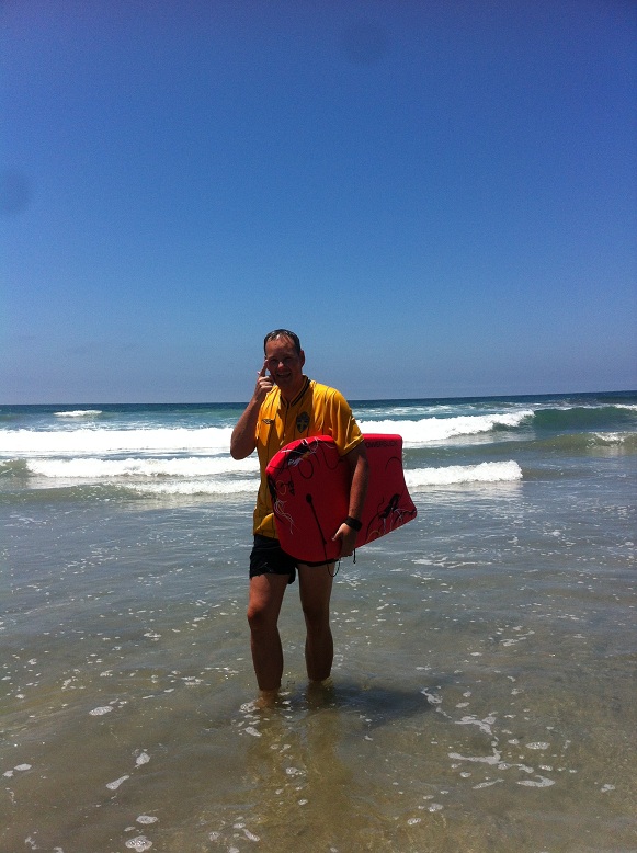 Vi valde dock bort sälbad och åkte istället till Del Mar och Solana Beach. Som vanligt enorma vågor, surfare som vågade och ett hav som doftar på ett alldeles speciellt sätt. Stilla havet doftar inte som medelhavet, Atlanten eller Indiska Oceanen. Det har sin egen doft. Badvakter fanns det gott om som tur är, och barnen och jag fick testa vår nya bodyboard.