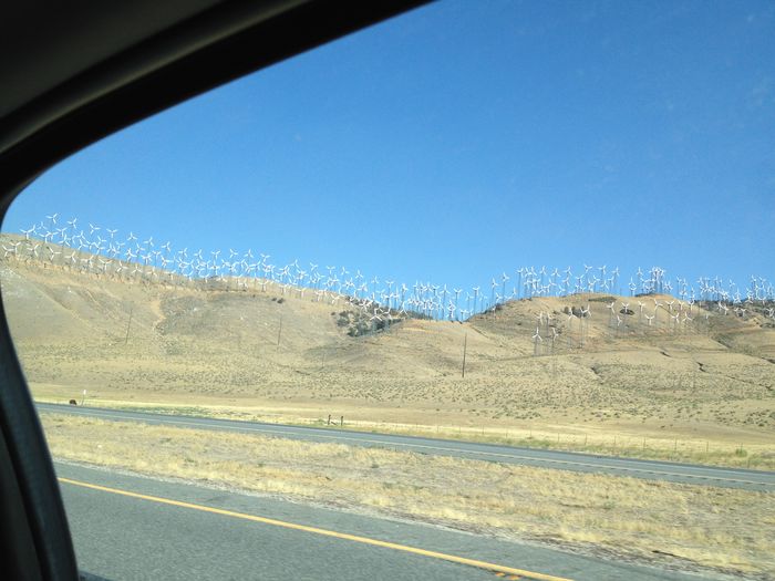 Vi åkte bl.a genom Mojaveöknen och såg de hundratals vindkraftverk som finns där, samt flygplanskyrkogården med hundratals plan som står i rad.