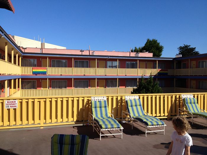 Trots spårvagnar, och gaselement så sov vi gott i vårt rum på Beck's Motorlodge, ett av de få ställen där man faktiskt får plats fem personer i ett rum. Liv handlade frukost igår, så vi bryggde kaffe på rummet, gjorde mackor och gick ut på soldäcket och studerade gatulivet och spårvagnarna på Market Street. Hotellet verkar vara noga med att tala om atrt det är gayvänligt med två regnbågsflaggor hängande, längs lejdarna.
