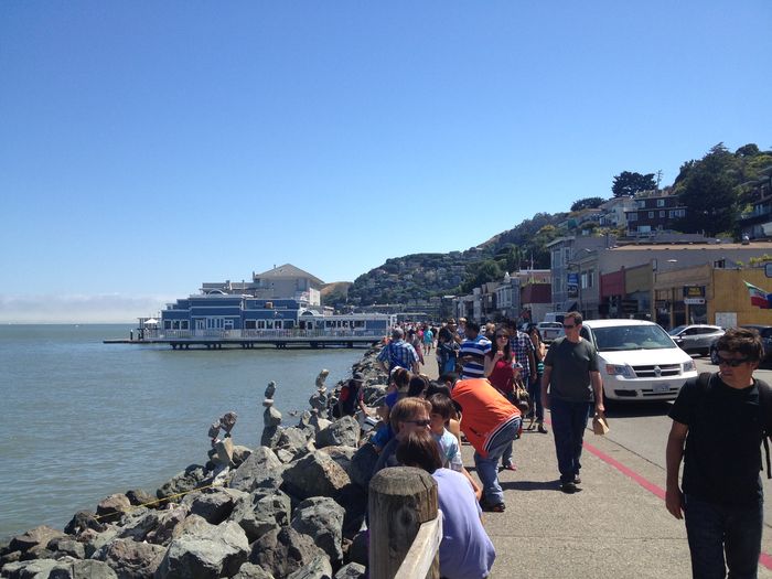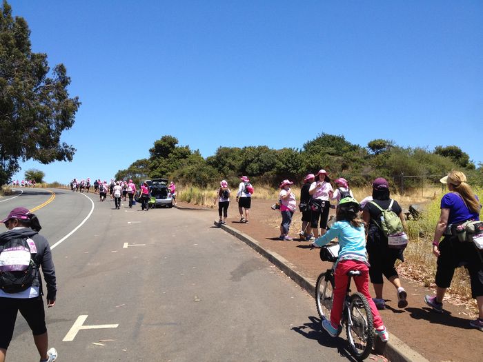 När vi sedan kom över till andra sidan och begav oss ner mot Sausalito så hamnade vi mitt i "Walk against breast cancer", tusentals människor som går för välgörenhet, och det var mycket rosa, och partaj på vägen, bl.a så hade en polisbil satt på sin megafon och körde ut hip hop musik så det hördes över halva countyt.