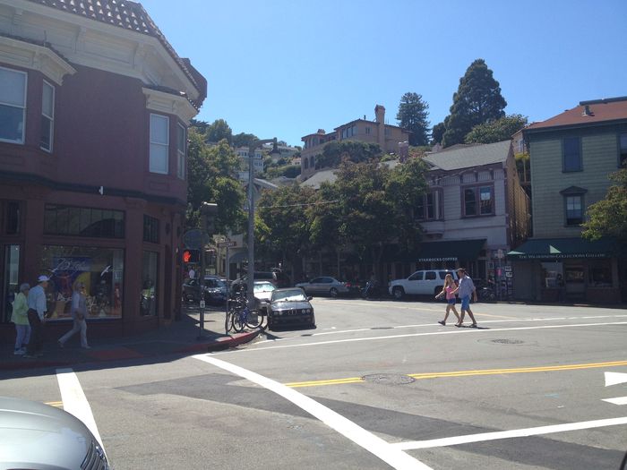 Så kom vi ner i "Sunny Sausalito", ett litet samhälle på andra sidan bron med hur coola hus som helst, antagligen en gräddhylla i San Francisco, men väldigt charmigt.