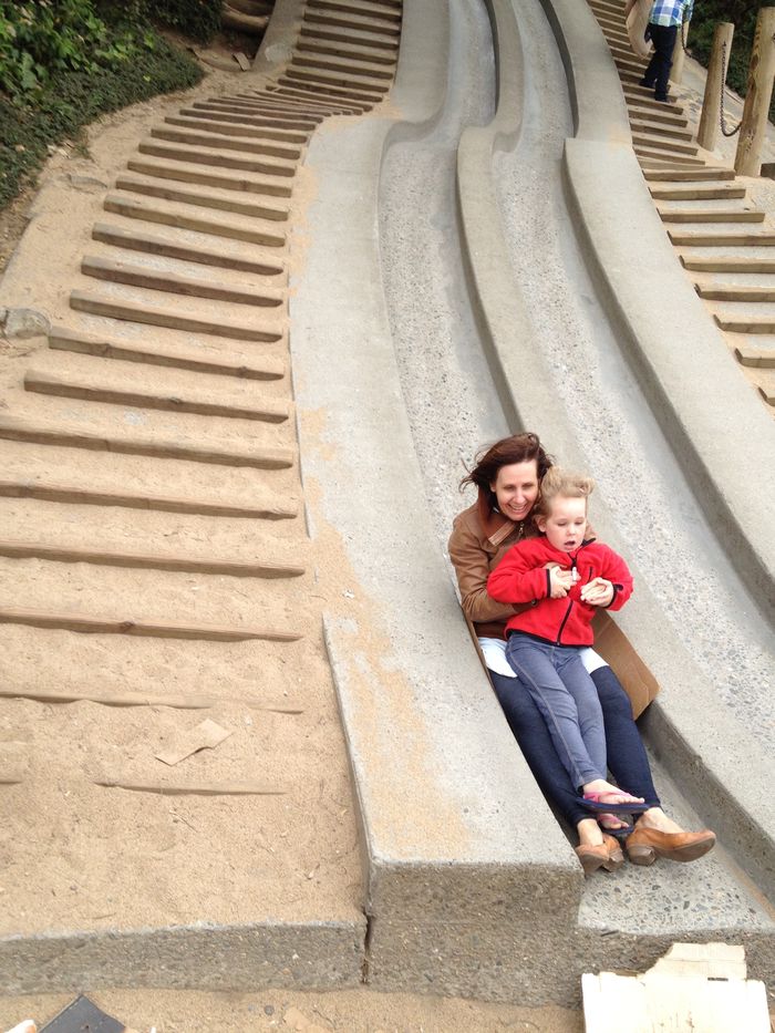 Signe lyckades övertyga Liv om att åka på en kartongbit nerför en rutschkana, och det gick verkligen undan när man åkte på kartong, jag hann knappt få med dem på bild. Sen blev det lekande i parken, ett nöje passande Ove Sundbergs fru, och barnen var också väldigt nöjda.