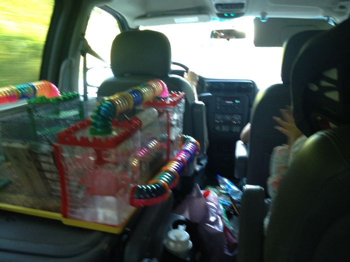 Så vi packade snabbt det vi trodde vi behövde, in med det i bilen och så drog vi iväg. Tur att vi har en stor bil eftersom vi oklokt nog köpt en stor bur till Tarantino. Som tur är så finns det en stol över till honom.