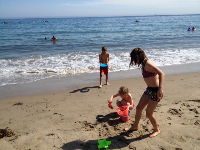 Efter ett par timmar på stranden där barnen kämpade för att skydda sitt sandslott.....