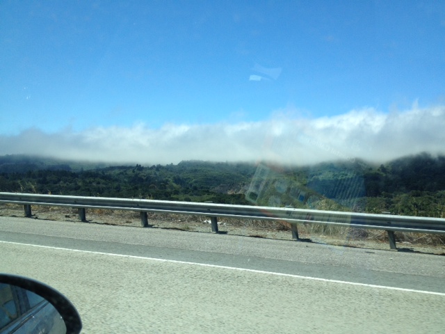 Nu blev det full fart mot värmen. Tog inte mer än en halvtimme efter att vi lämnat SF som vädret blev betydligt bättra. SF verkar ligga ganska dåligt till vad gäller vindar och dimma. Men trots den heta kaliforniska solen låg dimman tät över trädtopparna.