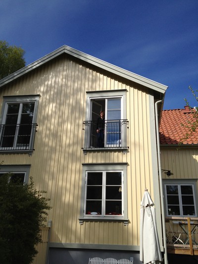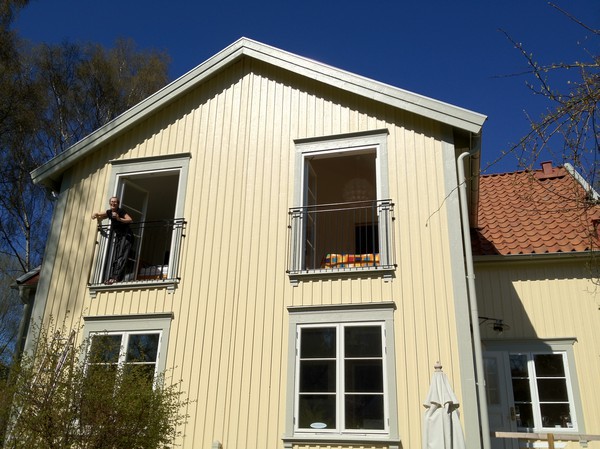Efter tältvaktandet röjde jag i trädgården och tog fram trädgårdsmöblerna. Detta för att få plats med de stegar vi skulle använda för att få upp räckena som vi äntligen skulle få upp framför våra franska balkonger.
