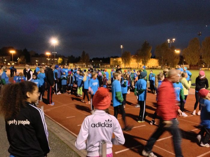 Det hade samlats en hel del barn, ungdomar och och det var mellan 100-200 löpare som gav sig av på det första varvet. Siri hade lyckats få sponsring av mormor och morfar, farmor och farfar, av mamma, samt av mitt företag, det ska ju vara rättvist med sponsringen inom familjen. Sammanlagt var det värt 160kr per varav tll lagkassan, vilket behövs då det planeras läger och tävlingar lite längre bort.