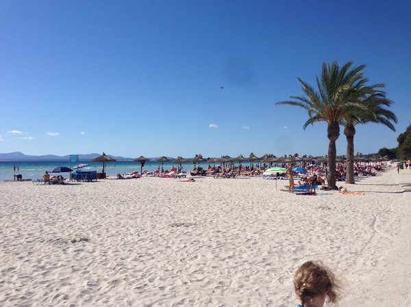 Och visst var stranden ok, det fanns lite mer att se när man snorklade, men som sandstrand betraktat var den snarare sämre än den i Alcudia. Det fanns otroligt nog lite bekvämligheter i form av solstolar som var dubbelt så dyra som i Alcudia, €18 för ett par med parasol per dag. Det fanns också ett lunchställe, men deras priser var tre gånger så höga som de dyraste i Alcudia.