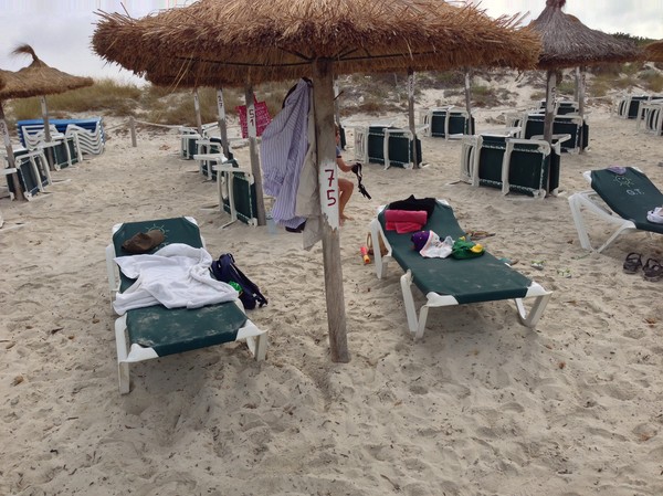 Många är vill alltså ha en solstol så mycket att de är beredda att komma dryga kvarten innan man får börja "boka" genom att lägga handduken där.
