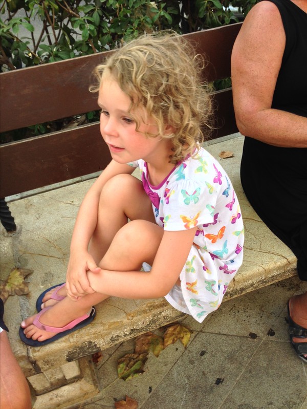 Shoppingrundan gick vidare till Zara, men nu hade jag och Signe fått nog och tog sikte på en bänk i en allé. Där upptäckte vi en man utklädd till Spindelmannen, väldigt taffligt, som hade som gimmick att göra stora såpbubblor. Fråga mig inte vad Spindelmannen har med såpbubblor att göra, men han var nog inte helt nykter. Spännande show dock, men det blev sällan några såpbubblor alls. Signe tyckte det var underhållande.
