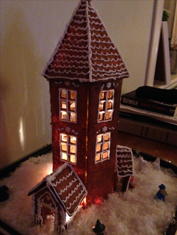 En annan stor tidslukare har varit vårt pepparkakshus, Muminhuset. I år uppgraderade Liv huset med fönsterrutor i gelatin. Det tog sina modiga tre kvällar att få allting klart.