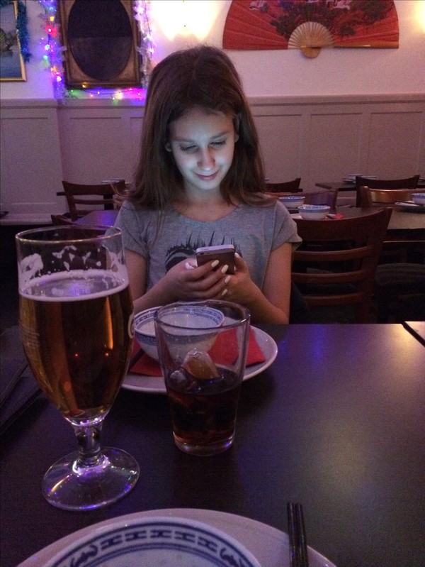 Min äldsta dotter har fyllt tonåring, och hon är en stor fan av kinamat. Vi bestämde oss efter mycket letande att ha födelsedagsmiddag på Ho's vid Hornstull, en av Stockholms bästa kinarestauranger. Under dagen glömde min dotter bort detta medan hon åkte till stan med sina kompisar. Så innan middagen kunde bli av fick jag använda min Hitta din iPhone-app för att leta mig fram till henne vid Sergelstorg eftersom hon inte hörde när jag ringde. Ibland är det bra att hela familjen har samma ituneskonto. Hon och jag hann först till Ho's ändå, så jag hann med en öl och hon en cola innan resten av familjen dök upp. Samtidigt hann hon läsa mail från min kusin som skickade födelsedagshälsningar från Hong Kong.