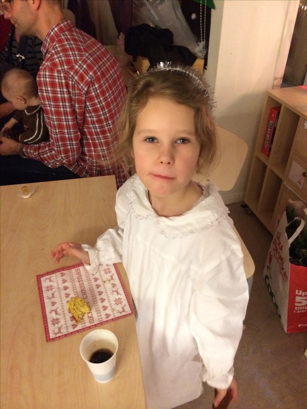 Signe har haft julavslutning, vi är klassföräldrar så vi fick äran att köpa och dela ut julklappar till hennes lärare. Det blev också en hel del julsånger, där inte alla barn startade samtidigt, en sorts oförberedd kanon, men som förälder tycker man allt sånt är gulligt och man får en liten tår i ögat.