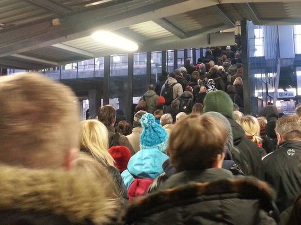 Slutar med att jag får stiga av i Skärmarbrink där det är så mycket folk att jag får vänta 20 minuter för att komma ut till de obefintliga ersättningsbussarna. Att folk kan gå så långsamt är för mig en gåta, väldigt nära ett Falling Down-moment där.