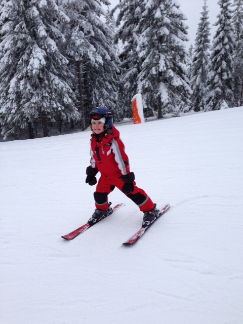 Signe tog ett rejält kliv under helgen. Från att ha hållt sig till barnbacken, kryssandes mellan älgdockor i tyg, så bytte hon upp sig till ett par längre skidor, började först åka gröna backar, sen blåa och gav sig till sist på en röd också. Det gick lansle inte lika bra, men det var inte kunnandet utan modet inför en brant som tröt, så hon la sig hellre bakåt än försökte åka. Så känner jag själv ibland när jag tagit mig vatten över huvudet och åker en lite för svår backe för mitt kunnande. Men Signe har annars skrattat sig igenom varje åk, sjungandes.