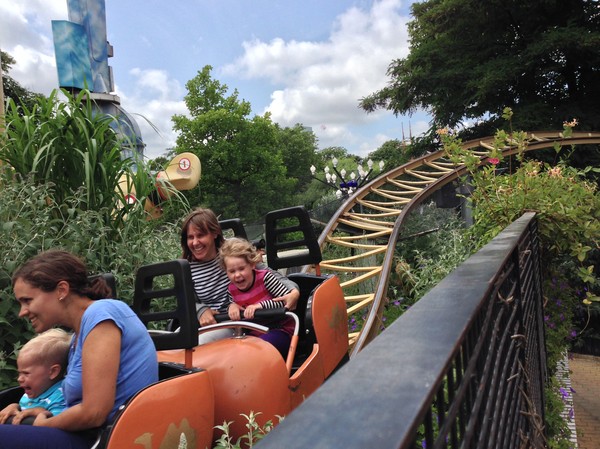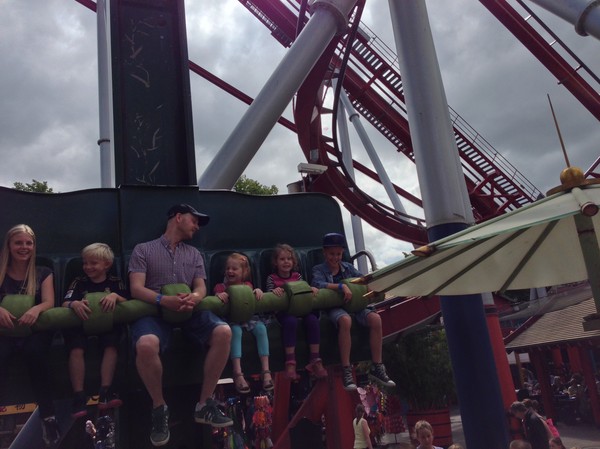 Men roligast av allt var hur vår yngsta tog sina första stapplande steg till att bli fullfjädrat berg- och dalbaneproffs. Vi värmde med två olika sorters fritt fall, ett litet och ett aningen större.