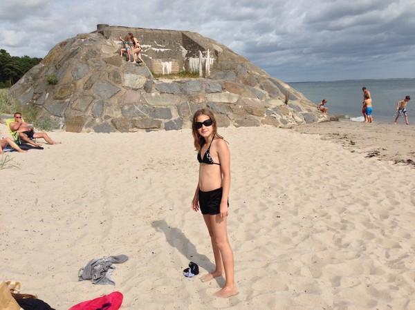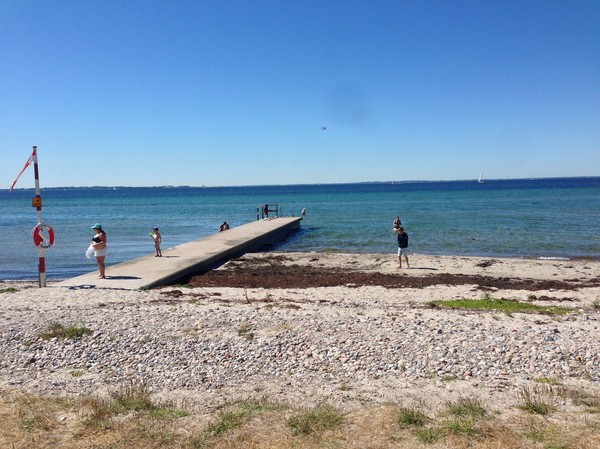 Åker man förbi bryggorna och jaktpaviljongen så fortsätter stranden, men det är lite mindre folk, och fler bra gamla fort att klättra på och leka vid.